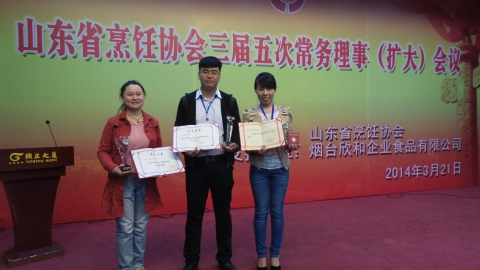 会议表彰2013年度全省烹饪餐饮行业先进集体和先进个人。公司教师王珊珊在山东省第三届烹饪技能大赛暨全国第七届职业技能大赛“面点” 项目比赛中荣获金奖,被授予“山东省富民兴鲁劳动奖章”、“山东省技术能手”、“2013年度山东省烹饪餐饮行业风云人物”及“青年岗位能手”的称号;殷东老师在“冷菜食品雕刻”项目比赛中荣获金奖,被授予“2013年度山东省烹饪餐饮行业风云人物”、“青年岗位能手”的称号。此外,王桂云、邢文君老师,被授予“传承烹饪技艺(餐饮服务)突出贡献奖”的称号。