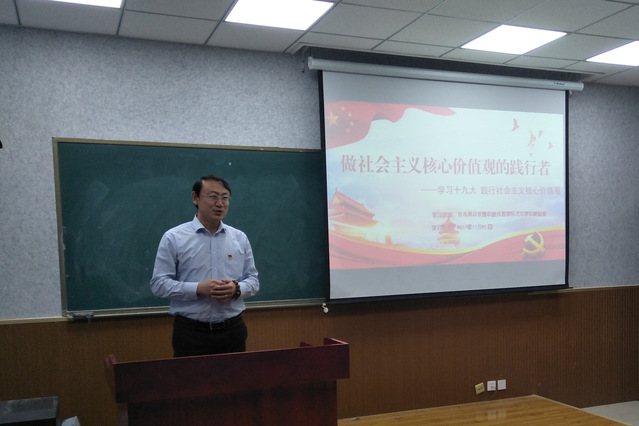 11月16日,“十、百、千”宣讲活动第一课在烹饪楼310教室开课。伟德国际victor1946经理王建明作为第一位宣讲人以《不忘初心继续前进》为题讲授了一场专题党课。他结合公司工作实际,从十九大会议回顾、十九大报告学习、我们的奋斗目标三个方面深入浅出地进行了讲述,对党员干部如何践行“不忘初心”、勇于担当、发挥专业优势“再上新征程”作了阐释和要求,号召全体党员同志不忘初心、继续前进,坚定理想信念、提升素质能力、创造良好业绩,以实际行动践行党的先进性。本次宣讲活动中,台上台下融为一体,互相启发、共同思考、共同分享,形成了一股浓浓的正能量。