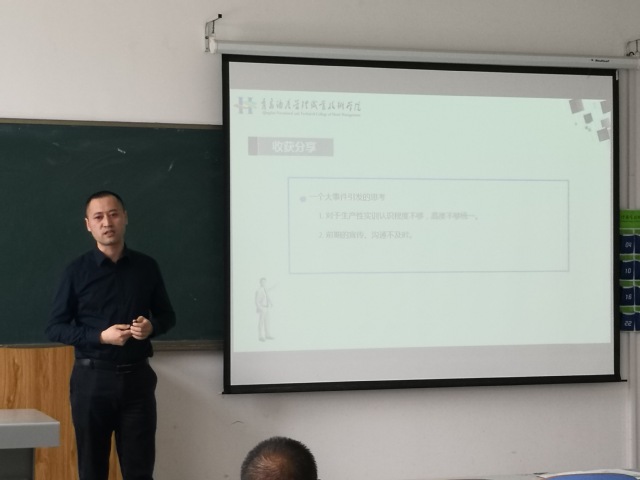 交流会上,何秋实老师介绍了在青岛鲁商凯悦大酒店的西点制作和西点食品检测等岗位的挂职情况,结合公司在挂职单位就业的同学工作感悟,提出了加强校外实习管理、加强和一线企业合作交流及提高员工英语学习等教学建议。刘俊新老师介绍了在八大关宾馆担任行政主厨助理的工作过程及挂职感悟,并基于挂职所得提出了加强员工实训实习的合理化建议。徐朝阳老师介绍了其在八大关宾馆作为质检员的挂职过程,介绍了一线企业在质检方面的做法并对比课堂教学提出了自己的建议。汇报结束后,王建明经理总结发言,对各位老师提出的建议表示了感谢,希望老师结合各自专业特点,创新转化经验成果,并付诸于以后的课堂教学。