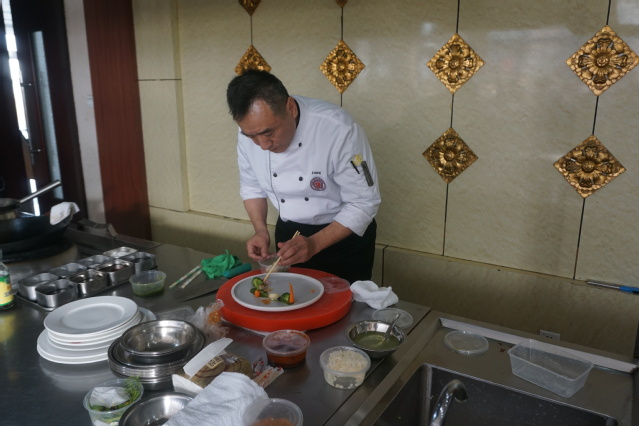 活动中,马强介绍了八大关宾馆的历史,分析了中餐制作的最新发展趋势,与员工分享了参与“上合峰会”的独特经验,并结合自己的职业经历,基于传承经典,创新形式的原则,向在座的师生演示了蟹粉团子黄鱼鳌、特色烤羊腿、海滨双味对虾和秋梨阿胶八宝饭等经典菜品,其精湛的技艺和精彩的讲解,引起现场师生的强烈共鸣。此次海斯曼课堂气氛热烈,节奏紧凑,通过现场问答、师生互动等形式提高了员工们的认识,加深了员工对烹饪理解、增加了专业自信心,达到预期成效。