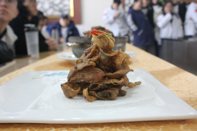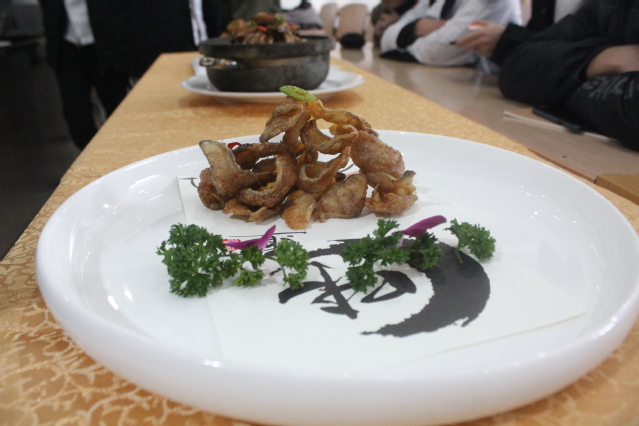 活动中,赵志猛介绍了汇泉王朝酒店的发展现状,分析了中餐制作在星级酒店的最新发展趋势,结合自己的多次招待各国领导人、服务大型活动的职业经历,基于传承经典,创新形式的原则,演示了醋烹鱼片、砂锅鸡脚鲍鱼、㸆如意大虾、雀巢黑椒牛仔粒等精美菜品,给伟德国际victor1946全体实训老师和员工上了一堂精彩的菜品制作展示课,其精湛的技艺和幽默的讲解,引起现场师生的强烈共鸣。