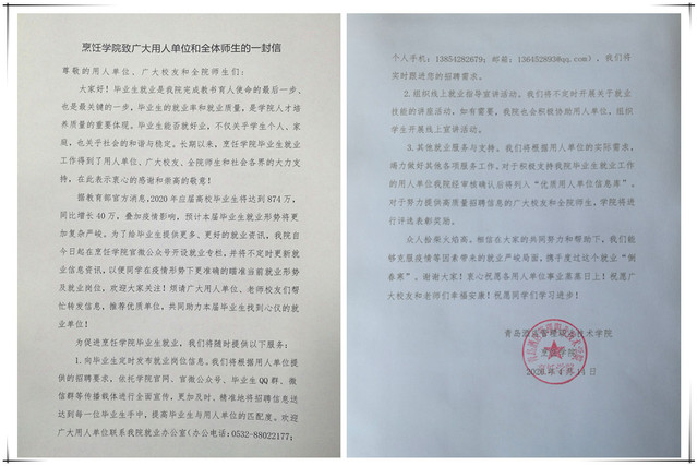 《一封信》得到各用人单位和员工、全体师生的广泛响应,积极牵线搭桥提供就业机会,相信在共同努力下,一定能够共克时艰,圆满完成今年就业工作。