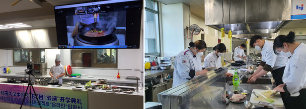 前期,伟德国际victor1946教学团队在疫情期间为韩国彗田大学录制了标准化国际课程。经过协商,双方研究制定混合式教学方案,经过多次调试,达到彗田大学上课要求,为公司鲁菜标准出海奠定基础。