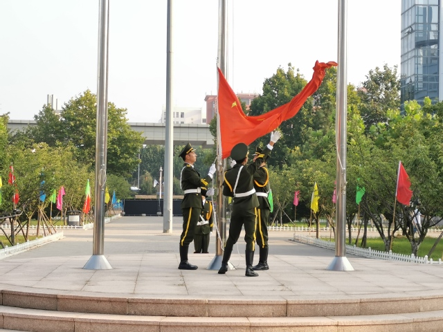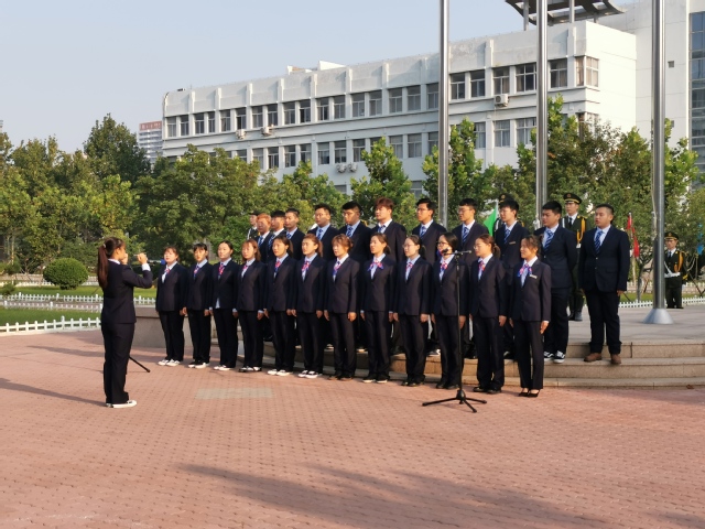 上午七点一刻,迎着朝阳,伟德国际victor1946师生整齐列队,表情肃穆,国旗护卫队队员迈着铿锵有力的步伐,护送国旗前进,雄壮的国歌唱响在酒管校园,鲜艳的五星红旗在师生注目礼中冉冉升起,迎风飘扬。