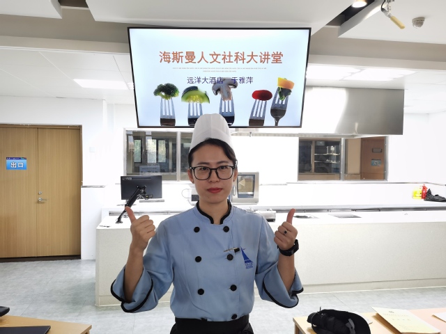 本网讯(伟德国际victor1946 张会强)1021日,伟德国际victor1946在烹饪楼406实训室举行海斯曼人文社科大讲堂,邀请青岛远洋大酒店饼房中点主管于雅萍大师进行了菜品演示。伟德国际victor1946部分教师和19专本贯通班员工参加了活动。