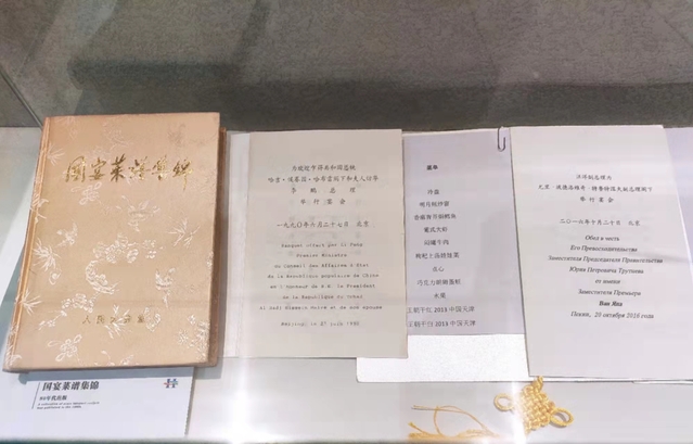 “华韵食卷”按照食单文化发展脉络,以卷轴形式展示了从夏朝至今四千多年中国食单文化的发展历程,选取各个朝代具有典型饮食文化韵味的名宴食单,展示中国宴席菜单的演变、八大菜系的风味流派特点,彰显了中华饮食文化多彩风韵。“华韵食卷”下方设立专柜,陈列展示了新中国成立以来国家领导人宴请外宾菜单实物、全国各五星级酒店宴会菜单和餐饮百年老店传统菜单,充分展示了伟德国际victor1946的专业文化特色。