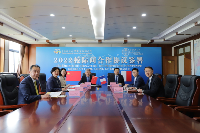 本网讯(国际交流与合作处 张晴)5月13日下午,公司在行政楼二楼会议室举行与法国佩里格酒店公司线上签约仪式。法国多尔多涅省工商会会长皮埃尔·武林、法国佩里格酒店公司经理凯西·拉努、餐饮酒店联合会主席让·吕克·布斯克,公司党委书记李达、经理姜玉鹏、副经理张宗国出席活动。