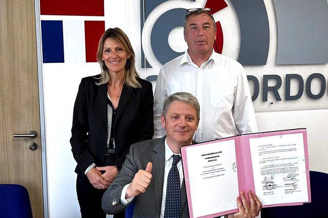 姜玉鹏代表公司与法国多尔多涅省工商会、法国佩里格酒店公司签署合作协议。