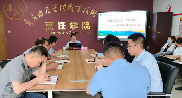 6月30日,党总支组织教师党员同过“政治生日”。会上,党员教师共同观看《建党百年 数描中国》视频,一同感悟中国共产党人的使命、抉择。教师党员深受感触,纷纷表示将始终以优秀共产党员的标准要求自己,履职尽责,勇于担当,为烹饪职教事业奉献自己的光和热。
