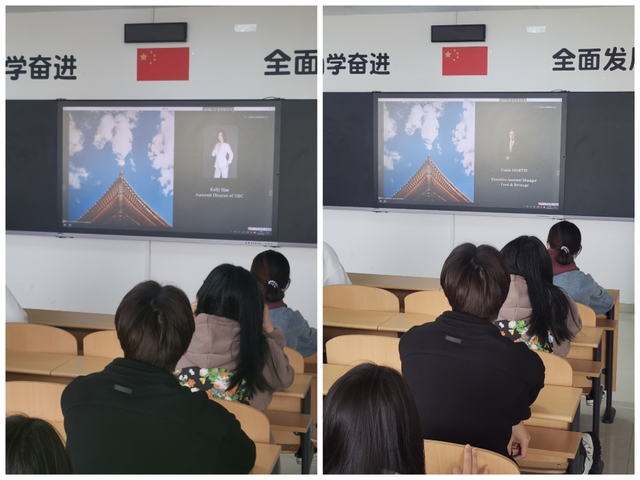 韩涵以瑰丽酒店品牌为题材,结合当前老员工严峻的就业形势及餐饮行业的就业前景和方向,提示同学们要对自己有一个明确而精准的定位,为今后的职业生涯做充分的准备,她鼓励同学们要努力学习餐饮专业知识与技能,不断提升个人文化素养,将来成为酒店管理行业的高素质人才。Cedric Martin以自身在餐饮行业经历的不同阶段作为生涯规划的切入点,分享了自己的经历和心得,强调酒店职业生涯规划不可少的是“寻找、目标、定位自我”,“练习、沉淀、挑战、成长”以及“蜕变、成熟和承担”。