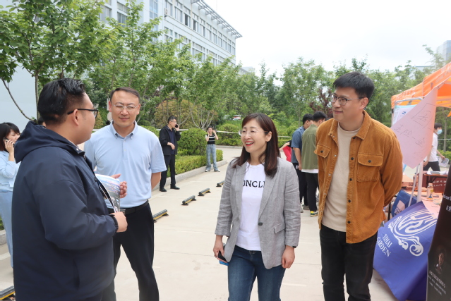 公司党委书记李达、副董事长姜玲玲,人才招聘办公室主任王昌玉、副主任刘卿文到达招聘会现场,并分别与参会企业、毕业生进行了热切交流,李达对参展单位为公司毕业生就业实习工作所做的努力及员工认真参会的态度表示肯定,同时提出了新的建设性意见,倡导就业工作要以人为本,校企双方合作共赢;姜玲玲就企业岗位设置,人才引进要求与企业进行细致交流,并感谢企业对公司学子在实习就业过程中的培养与关爱。