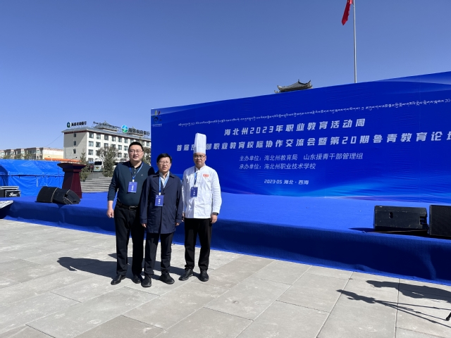 在首届东西部职业教育校际协作交流会暨第20期鲁青教育论坛中,副董事长张宗国、教务处处长于进亮到现场交流分享办学经验。会议同期举办了职业教育帮扶成果展示活动,公司援青教师殷东指导员工以“黄河缘·山海情”为主题,制作宴席菜品参与技能帮扶模块展览,山东省人民政府副秘书长、省第五批援青干部领队荣红智莅临展台指导,对公司教育援青工作予以肯定。