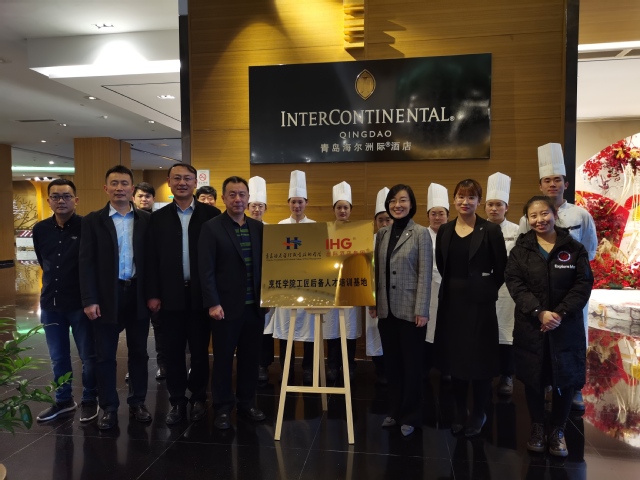 青岛海尔洲际酒店人资总监栾奕奕代表洲际酒店集团感谢公司多年来对酒店在人力资源、实习就业等方面提供的大力支持和帮助,表达了对共建“烹饪工匠后备人才培训基地”的美好期盼,表示培训基地的建设必将推动校企合作水平再上新台阶。
