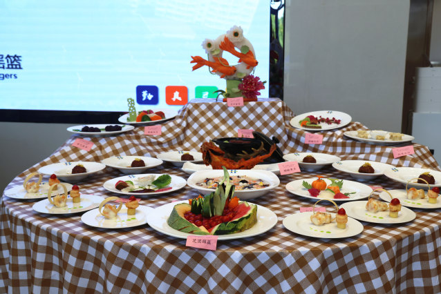 本次汇报展示充分使用区域海洋特色原料进行菜品制作,实现了日常专业课程建设与服务区域经济发展耦合共生。烹饪工艺与营养、西式烹饪工艺、中西面点工艺专业460余名员工以小组为单位,在专业教师和行业导师的指导下,充分利用所学知识,参照技能大赛制作标准,融合智慧厨房数字技术,通过热菜制作、冷拼雕刻、糖艺制作、中西面点等形式,从主题内涵、色彩搭配、口味质感、烹调技艺、摆盘造型、康养搭配等角度精心设计打磨,自行完成一桌主题宴席的设计与制作,集中展示了青年工匠后备人才对饮食文化精髓、人间烟火至味和烹饪艺术之美的深刻理解,展现了有理想、敢担当、能吃苦、肯奋斗的新时代青年青春风采。