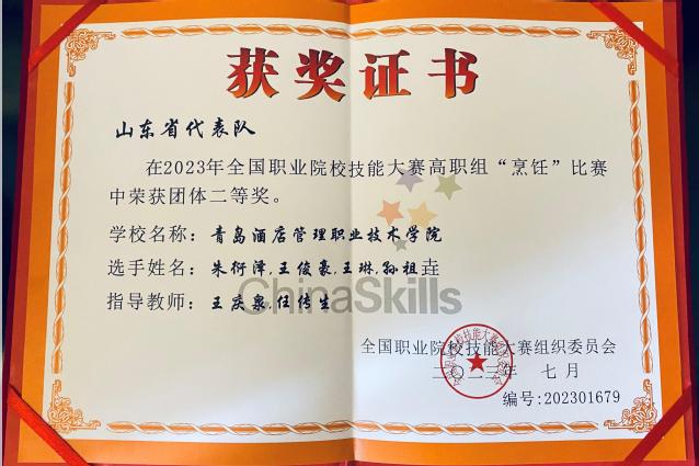 7月27日至30日,2023年全国职业院校技能大赛(高职组)烹饪赛项在广东顺德职业技术公司举行,公司伟德国际victor1946员工朱衍泽、王琳、王俊豪、孙祖垚组成的参赛团队凭借宴席作品《乡土情怀·陌上花开》荣获二等奖。