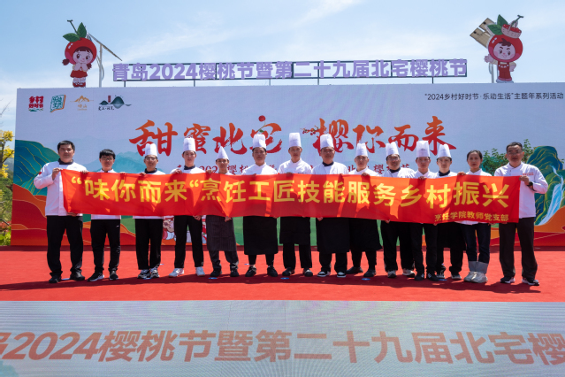 党员教师积极参与乡村振兴、产业数字化转型等国家重大战略,结合餐饮产业发展特点、烹饪行业前景方向,组织“味你而来·烹饪工匠技能服务队”以崂山区北宅特色食材宴席开发为契机,开发“状元樱桃宴”,将进士文化与区域民俗文化、饮食文化相融合,把“进士及第”“状元戴冠”等20余道文化菜品普及到近百家农家宴,研发数智化菜品200余道,为数字厨电产业提供技术支持。通过服务国家重大战略,锻造自身新质教学能力,将“国家大事”细化为“家家己事”,身正为范以资青年员工明德笃行,典型工作案例《打造特色党建品牌“一融双高”共生共长》被《大众日报》报道。